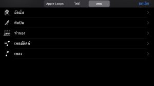 - จากนั้นระบบจะขึ้นเป็นลิสต์เหมือนกับใน Music ของ iPhone ของเรานะคะ เราก็เลือกเลยค่ะว่าจะเอาเพลงไหน.. แต่ย้ำนะคะ.. ว่าเพลงที่เลือกตัด ต้องเป็นเพลงที่ไม่ติดลิขสิทธิ์และอยู่ในเครื่องของเราอยู่แล้วเท่านั้นนะคะ.. พอเลือกได้แล้ว.. ให้เรา -กดค้าง- ที่รายชื่อเพลงค่ะ แล้วระบบจะเด้งมาให้ที่หน้าตัดต่อ