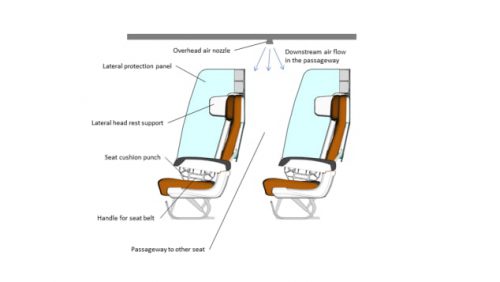 แนวคิดของเขาก็ง่ายๆค่ะ เพียงแค่ติดตั้งฉากใสกั้น ติดตั้งไว้ที่เบาะตรงกลางของเบาะแบบสามที่นั่งติดกันของชั้นประหยัด เพื่อให้ผู้โดยสารรักษาระยะห่าง แม้จะน้อยกว่าระยะ 2 เมตรที่แนะนำแต่ก็ช่วยป้องกันได้ดีกว่าการเว้นที่ว่างให้นั่งห่างกัน