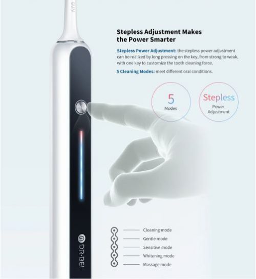 ตัวแปรงมาพร้อมการทำงาน 5 โหมดทำความสะอาดให้เลือกใช้ตามสภาพของช่องปากแต่ละคน คือ Cleaning mode, soft mode, sensitive mode, whitening mode, และ massage mode
