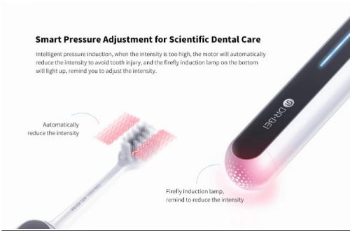 แถมยังมีฟีเจอร์ปรับแรงกดอัตโนมัติเพื่อไม่ให้ทำร้ายเหงือกและฟันเวลาแปรงเมื่อเราแปรงแรงเกินไปมอเตอร์จะลดความแรงลง พร้อมไฟที่ด้ามแปรงจะสว่างขึ้นเพื่อบอกเราให้รู้ จะได้เบามือลง