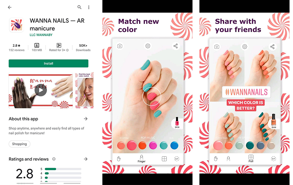 ใครที่ชื่นชอบการทำเล็บ ทาเล็บ สีนั้น สีนี้ ลายแบบนั้น ลายแบบนี้แล้วล่ะก็ ต้องนี่เลยค่ะ wanna Nails ช่วยให้คุณได้สนุกกับการตกแต่งสีเล็บของตัวเอง เผื่อชัวร์ได้ว่าสีไหนเหมาะกับมือของเรา สีไหนไม่เหมาะ ลายไหนไม่ได้ก็ต้อง Say Bye กันไปเลยจ้า
