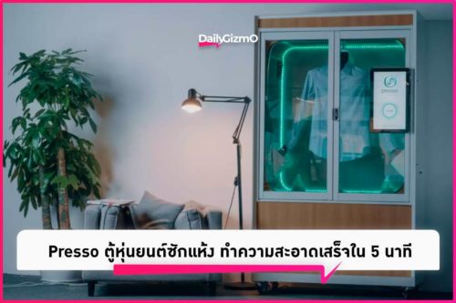 Presso เป็นตู้ซักแห้งเสื้อผ้าที่มีขนาดเท่ากับตู้เย็นขนาดเล็ก ด้านล่างติดล้อสำหรับย้ายที่ใช้งานได้สะดวก เพียงแค่เสียบสายก็สามารถใช้งานได้ทันที