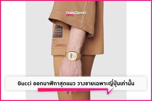 Gucci ออกนาฬิกาสุดแนว ได้แรงบันดาลใจจากกีฬาสเก็ตบอร์ด ตัวเรือนสีทอง บนหน้าปัดมีตัวอักษรคาตะคานะเด่นชัด วางขายเฉพาะญี่ปุ่นเท่านั้น