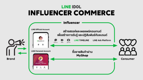 ก่อนหน้านี้ทาง LINE ได้เปิดตัว LINE Idol ช่องทางใหม่ในการช่วยให้เหล่าศิลปินและคนดังเข้าถึงผู้ติดตามได้มากขึ้นซึ่งข้อดีของการใช้ Influencer Commerce บนแพลตฟอร์มของ LINE คือสามารถเข้าถึงกับคนที่ติดตามได้ 100% มาวันนี้ได้ขยายให้ครอบคลุมในส่วนของ Influencer (ซึ่งจะแบ่งเป็น Macro Influencer และ Micro Influencer)