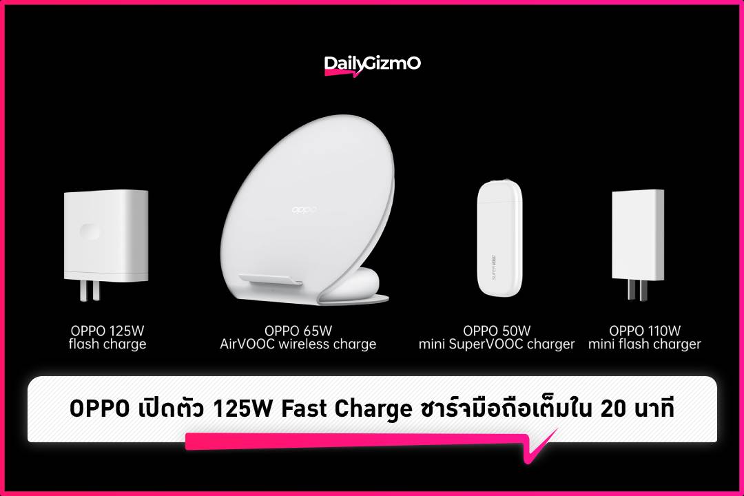 วันนี้ทาง OPPO ได้เปิดตัวเทคโนโลยี Fast Charge ใหม่ถึง 4 รุ่นด้วยกัน ประกอบด้วย 125W Fast Charge, 65W AirVOOC, Mini 50W SuperVOOC และ 110W Mini Flash Charger