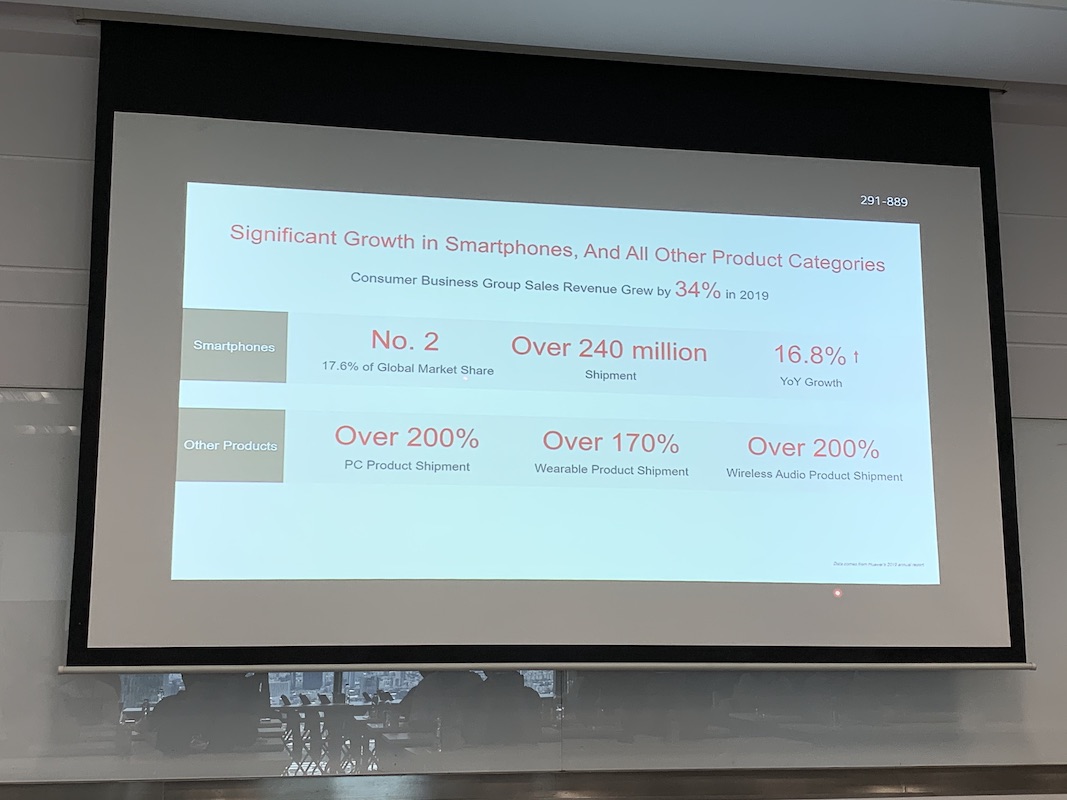 โดย มร.อิงมาร์ ได้กล่าวถึงภาพรวมตลาดในปีผ่านมาของ หัวเว่ย คอนซูมเมอร์ บิสสิเนส กรุ๊ป ในระดับโลกยังคงเติบโตอย่างต่อเนื่องทั้งในกลุ่มผลิตภัณฑ์สมาร์ทโฟนและสมาร์ทดีไวซ์อื่นๆ มียอดขายเพิ่มสูงขึ้นถึง 34% ในตลาดสมาร์ทโฟนหัวเว่ยยังคงรั้งอันดับ 2 ในแง่ของส่วนแบ่งตลาด โดยมีสัดส่วนอยู่ที่ 17.6% ขณะที่ยอดนำส่งผลิตภัณฑ์เพิ่มสูงกว่า 240 ล้านเครื่อง และเมื่อเทียบแบบปีต่อปี หัวเว่ยเติบโตสูงถึง 16.8% ในขณะที่กลุ่มผลิตภัณฑ์อื่นๆ ยังคงเติบโตอย่างมีนัยสำคัญ โดยผลิตภัณฑ์ในกลุ่มคอมพิวเตอร์แล็ปท็อป (PC) มียอดนำส่งผลิตภัณฑ์เพิ่มสูงขึ้นกว่า 200% ขณะที่ผลิตภัณฑ์ในกลุ่มสวมใส่ (wearables) เพิ่มสูงขึ้นกว่า 170% และผลิตภัณฑ์ในกลุ่มหูฟังไร้สาย (wireless audio) เติบโตมากกว่า 200%
