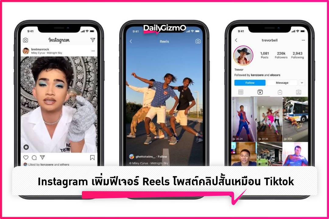 Instagram เพิ่มฟีเจอร์ Reels เปิดให้ผู้ใช้สามารถโพสต์คลิปวิดีโอสั้นๆ ใส่เพลงใส่เอฟเฟคได้เหมือน Tiktok