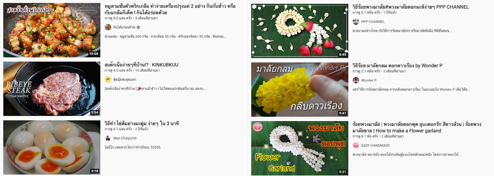 YouTube ดูมิวสิควิดีโอเพลงโปรดด้วยกัน หรือถ้าเป็นสายชิมก็น่าจะลองค้นหาวิธีทำเมนูอาหารหรือขนมที่อยากทานด้วยกันก็สนุกดี หรือจะลองค้นหางานอดิเรกใหม่ ๆ บน YouTube ที่สามารถทำกับคุณแม่ได้ ซึ่งก็มีให้เลือกเยอะเลย ทั้งปลูกต้นไม้ จัดดอกไม้ วาดรูป เรียนภาษาต่างประเทศ ฯลฯ