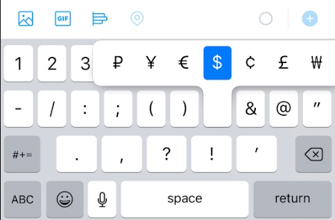 ไม่ใช่แค่ตัวอักษรเท่านั้น ในส่วนของหน้าตัวเลขก็มีสัญลักษณ์พิเศษซ่อนเอาไว้เช่นกัน ถ้าเรากดค้างที่ตัวสัญลักษณ์ค่าเงินจะสามารถเปลี่ยนเป็นค่าเงินสกุลอื่นได้
