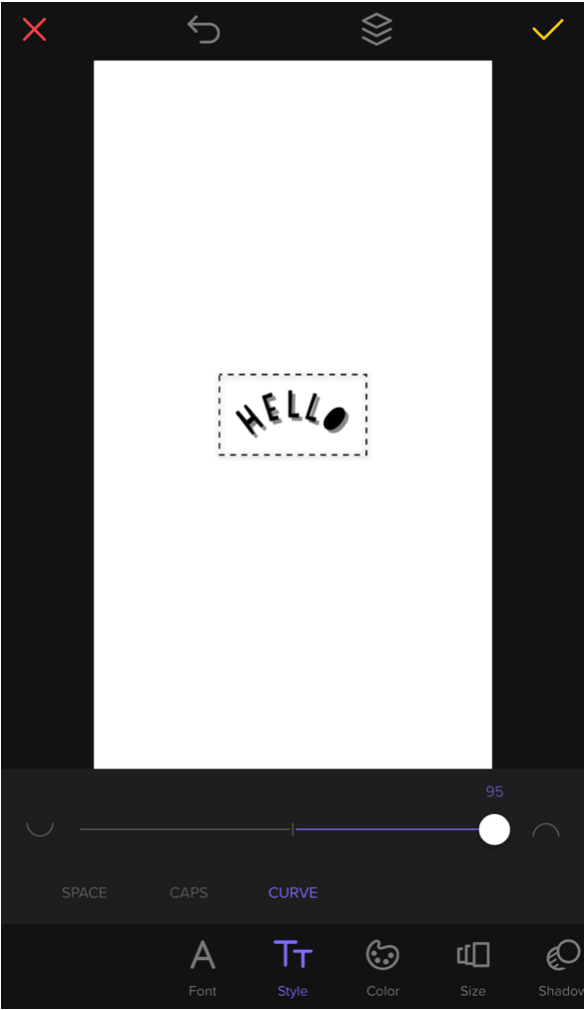 แต่ที่แนะนำต้องนี่เลย ปรับตัวอักษรให้โค้ง เพิ่มความเก๋ไปอีกระดับนึง กดเลือก Style แล้วเลื่อนไปที่ Curve เพื่อปรับความโค้งในระดับที่ต้องการ