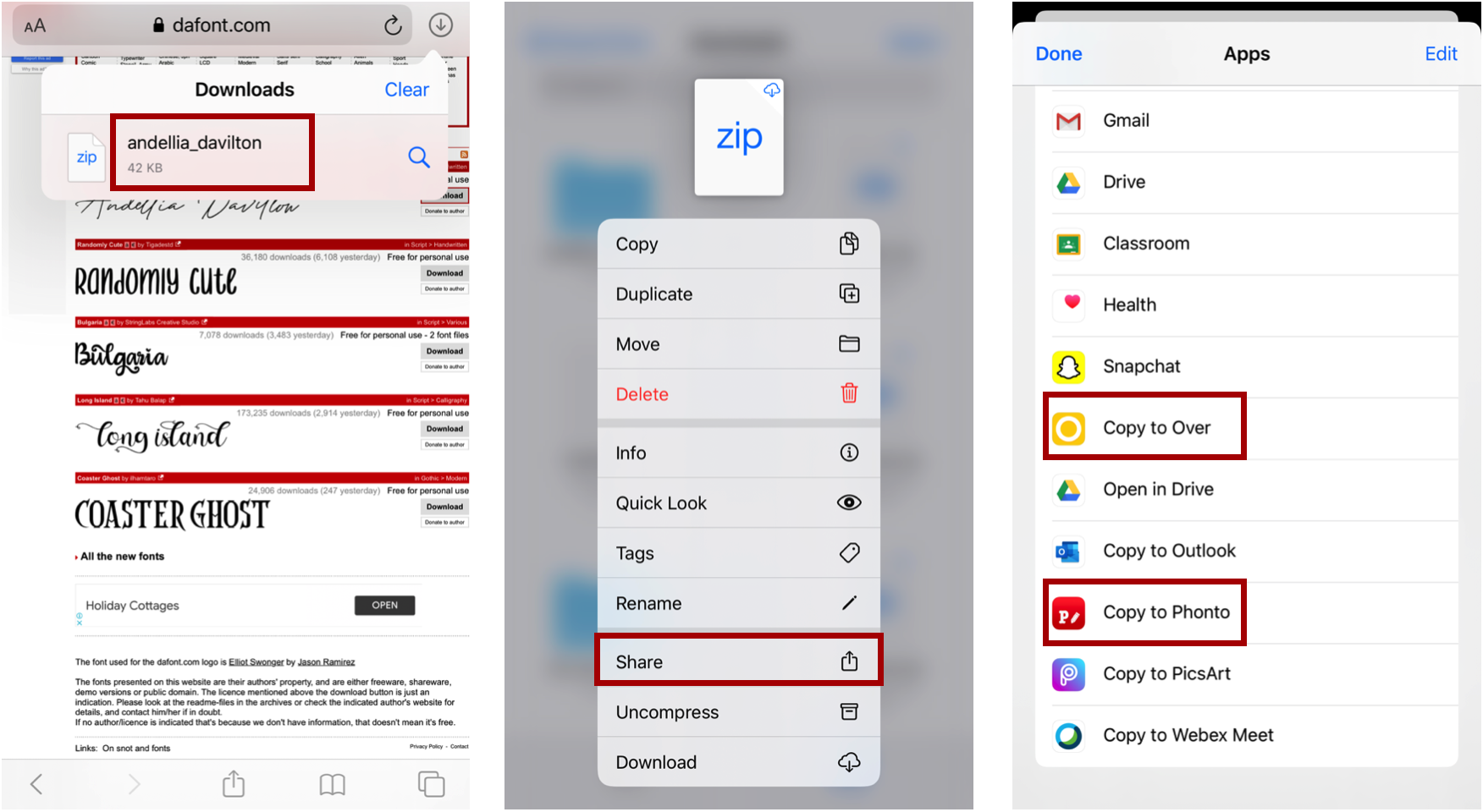 ส่วนวิธีดาวน์โหลดก็ไม่ยากเลย เพียงแค่กดดาวน์โหลด Font ที่เราต้องการ จากนั้นกดที่ชื่อ Font แล้วกด Share จากนั้น Copy ไปยังแอปพลิเคชันที่เราต้องการใช้ได้เลยค่ะ ง่ายๆขั้นตอนมีเท่านี้เอง