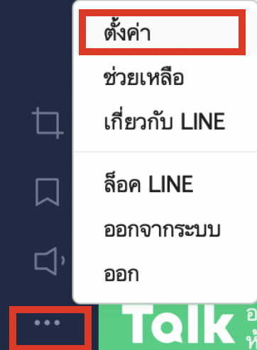 แค่ไปที่ปุ่มตั้งค่า รูปจุด 3 จุดที่มุมซ้ายล่างของไลน์ แล้วเลือกตั้งค่า