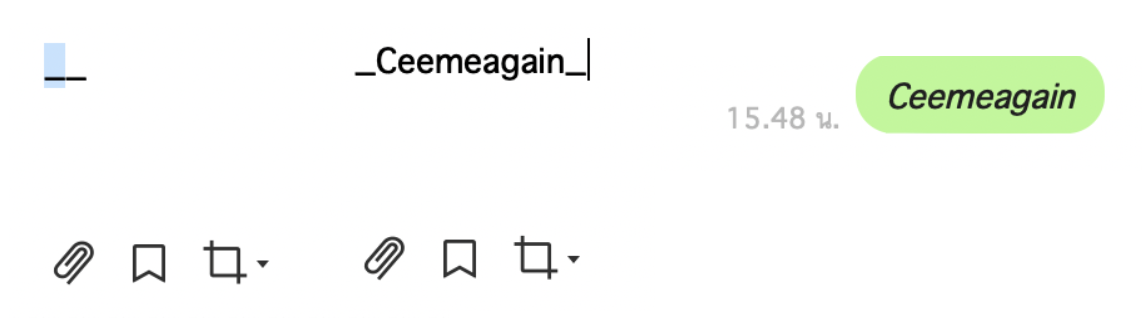 ในช่องพิมพ์ข้อความของไลน์ก็จะขึ้น _ _ ให้เราพิมพ์ข้อความที่ต้องการทำตัวเอียงไปได้เลย