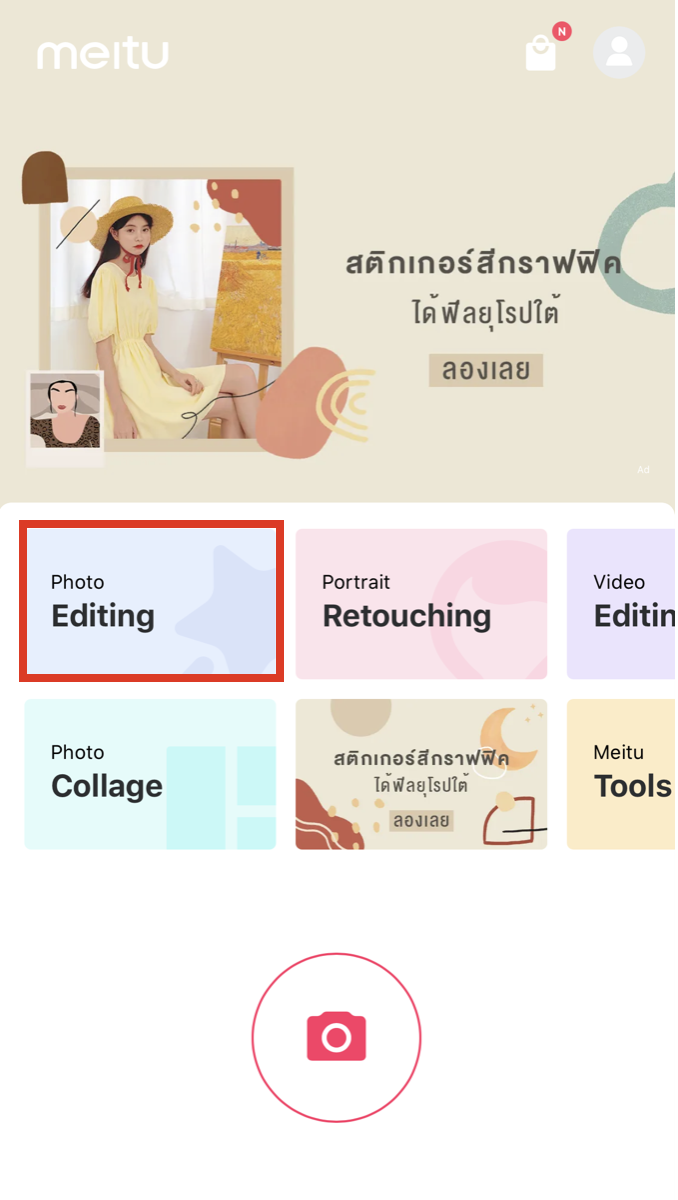 ก่อนอื่นไปที่แอปฯ Meitu แล้วเลือก Photo Editing จากนั้นเลือกรูปที่เราต้องการ
