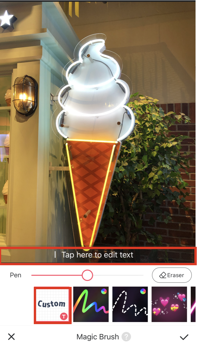 เลือก Custom แล้วแตะ Tap here to edit text เพื่อพิมพ์ข้อความที่เราต้องการลงไป