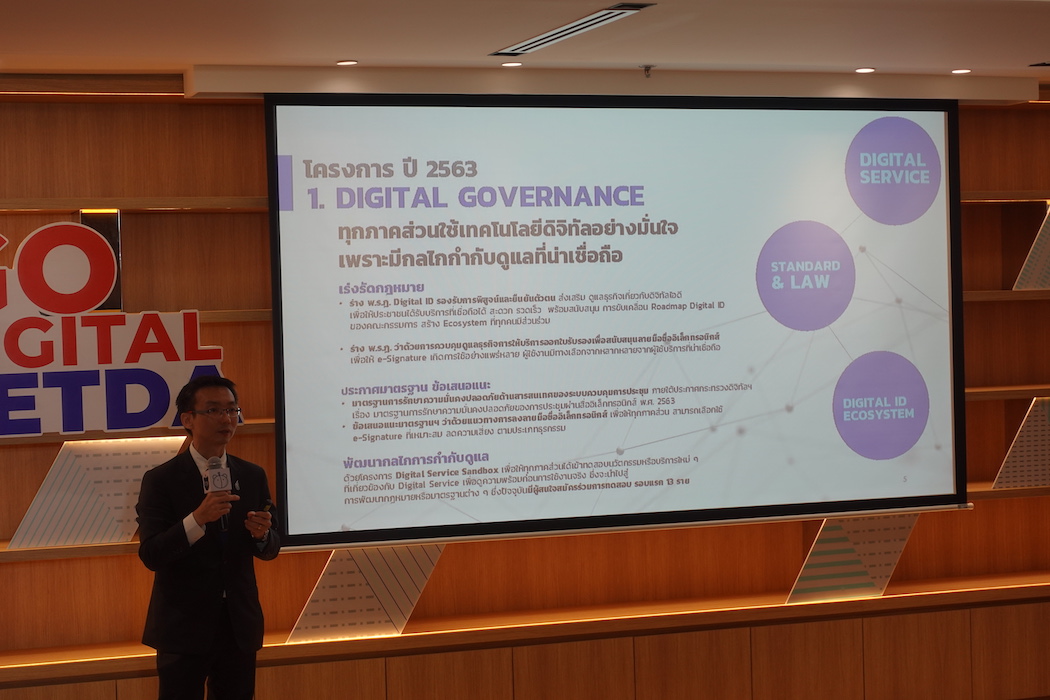ด้วยการจัดทำหลักเกณฑ์ กฎหมาย มาตรฐาน รวมถึงแนวปฏิบัติในการดูแลธุรกิจดิจิทัลละบริการที่สำคัญ ๆ พร้อมสร้างความเชื่อมั่นให้ประชาชนในการใช้บริการธุรกิจบริการด้านดิจิทัลที่เปิดให้บริการไปแล้ว และกำลังจะเปิดให้บริการ เช่น บริการด้าน e-Meeting บริการด้าน Digtal ID ด้วยระบบการตรวจประเมินที่มีมาตรฐาน