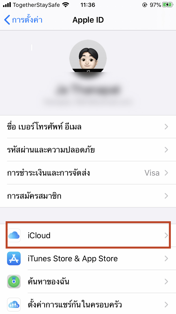 1. สำหรับวิธีการเปิดใช้งาน สามารถเปิดใช้งานโดยเข้าไปที่ การตั้งค่า (Settings) กดที่ Apple ID จากนั้น กดคำว่า iCloud