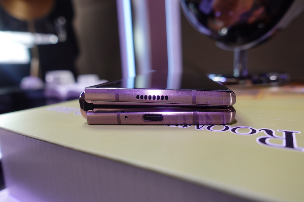 ช่องว่างตอนพับก็มีขนาดเล็กลงมา ทำให้ฝุ่นต่างๆเข้าได้น้อยลง พอร์ตด้านล่างตัวเครื่องจะเป็นด้านซ้ายจะเป็นลำโพง ส่วนด้านขวาจะเป็นพอร์ต USB-C