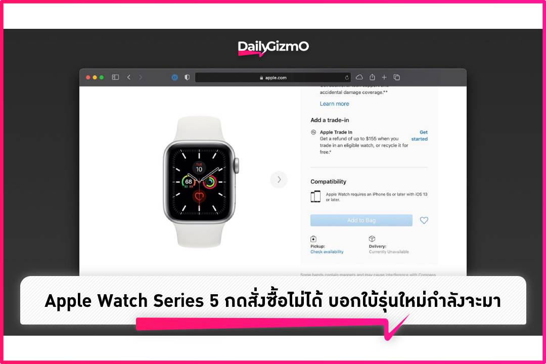 ตอนนี้ถ้าใครเข้าไปในเว็บของ Apple ฝั่งสหรัฐอเมริกาจะพบว่าเราไม่สามารถกดสั่งซื้อ Apple Watch Series 5 ได้ ทำให้ตอกย้ำข่าวลือก่อนหน้านี้ว่าจะมีการเปิดตัว Apple Watch Series 6 ในวันนี้