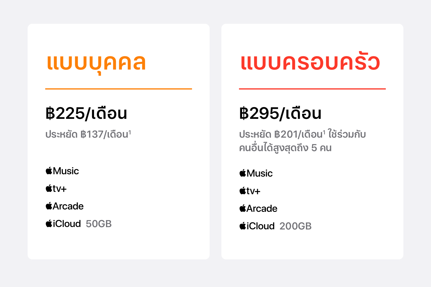 มาเริ่มที่บริการแรกกันก่อนเลย Apple One คือการสมัครสมาชิกที่รวมหลายบริการเข้าด้วยกัน ว่าง่าย ๆ จ่ายราคาเดียวแต่ได้พร้อมกันหลายบริการ คุ้มมาก ๆ สำหรับใครใช้ที่ใช้เยอะ ๆ โดยตัวบริการมีทั้ง iCloud Storage, Apple Music, Apple TV+, Apple Arcade