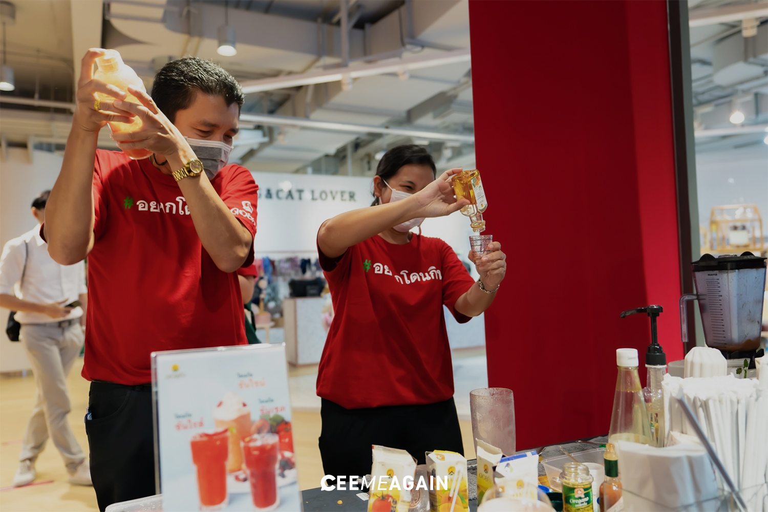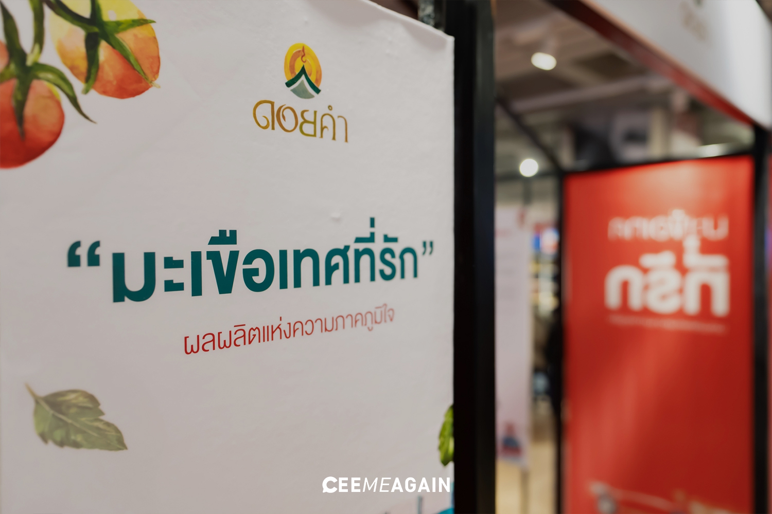 และพิเศษในวันเปิดงานนิทรรศการได้มีโอกาสพูดคุยกับคุณพิพัฒพงศ์ อิศรเสนา ณ อยุธยา กรรมการผู้จัดการใหญ่ บริษัท ดอยคำผลิตภัณฑ์อาหาร จำกัด และคุณปารีสา จาตนิลพันธุ์ ผู้อำนวยการอาวุโส ฝ่ายพัฒนาธุรกิจค้าปลีก บริษัท สยามพิวรรธน์ รีเทลโฮลดิ้ง จำกัด ถึงแนวคิดที่มาในการปรับภาพลักษณ์เพื่อเชื้อเชิญเจเนอเรชันใหม่ให้ได้มาลิ้มลองมากขึ้น อีกทั้งในงานยังได้มีการสาธิตวิธีการทำอาหารเมนู “ผัดไทยไข่โสร่ง” จากเต-ตะวัน วิหครัตน์ และ เชฟหนุ่มหล่อ แม็ค-อนุชา พัฒนาศิริรักษ์ ซึ่งในเมนูนี้มีการใช้น้ำมะเขือเทศแท้ 100% ที่ใช้ผลผลิตมะเขือเทศต้นฤดูกาลมีรสชาติดีที่สุด เป็นหัวใจหลักของซอสผัดไทยสูตรนี้ นำมาผสมกับ เต้าหู้ยี้ น้ำตาลปี๊บ หอมแดงซอย น้ำปลา และเพิ่มมิติของรสชาติหวานนิดเผ็ดหน่อย ด้วยมะเขือเทศทาขนมปัง ช่วยชูรสชาติผัดไทยจานนี้โดดเด่นยิ่งขึ้น ซึ่งถึงแม้ว่าหลายคนอาจจะไม่เคยรับประทานเมนูนี้กันมาก่อน แต่เมื่อได้ลองแล้วก็ต้องบอกเป็นเสียงเดียวกันว่าอร่อย !