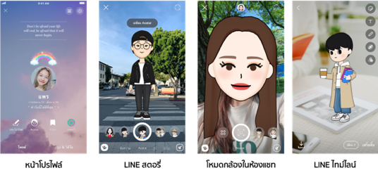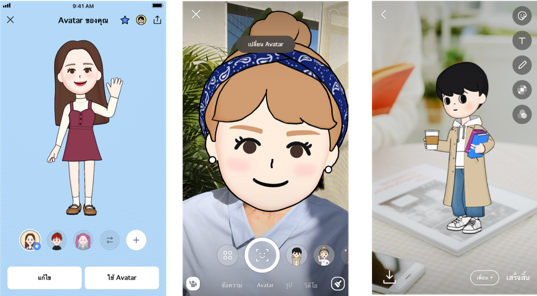 และไม่ใช่เพียงการปรับเปลี่ยนรูปโปรไฟล์ให้เป็นการ์ตูนแทนตัวเราเท่านั้น แต่ LINE ยังเพิ่มลูกเล่นให้ผู้ใช้งานนำ Avatar ของตัวเองไปใช้สร้างความสนุกในรูปแบบอื่นๆ ได้อีก ด้วยการใช้ Avatar ผ่านโหมดกล้องใน LINE ทำให้คาแรกเตอร์ Avatar ของเราสามารถโลดแล่น เคลื่อนไหวได้อย่างหลากหลาย สร้างคอนเทนต์ตามสไตล์ที่เราอยากให้เป็น โดยการให้ Avatar เราไปปรากฏในบรรยากาศจริงในขณะนั้น หรือเข้าไปอยู่ในวิวอื่นๆ ที่เราต้องการได้ตามใจชอบ ด้วยการเปลี่ยนภาพพื้นหลังของ Avatar เช่น การใส่ Avatar ขยับตัวไปมาบนหนังสือที่เราอ่าน หรือเดินเล่นอยู่ในสถานที่ท่องเที่ยวในวินาทีนั้นก็ยังได้ เรียกได้ว่า สร้างคอนเทนต์ Avatar เราในสถานที่ต่างๆ แบบเรียลไทม์ได้ตามต้องการ