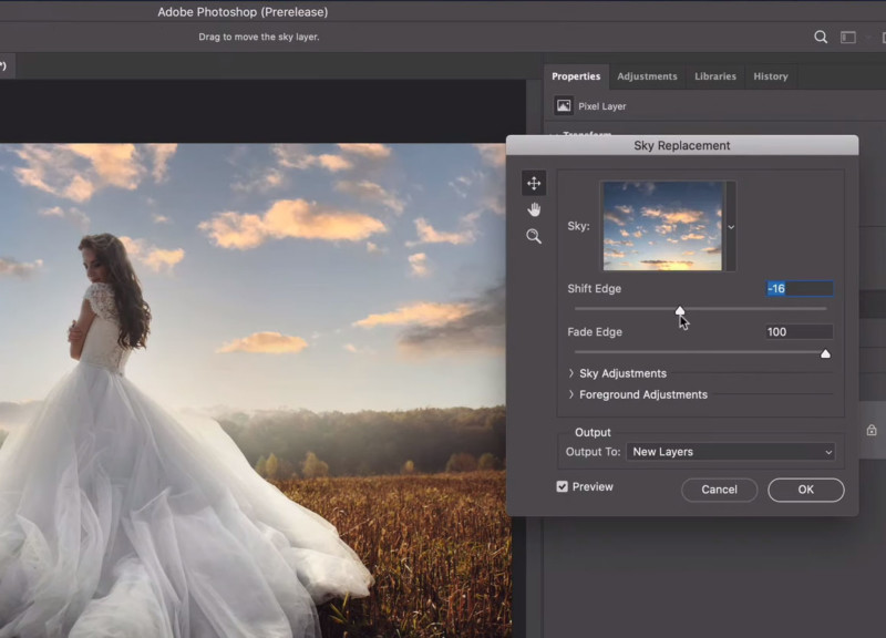ในฝั่งของ Photoshop นั้นได้มีการปล่อยคลิปวิดีโอโชว์ความสามารถใหม่ชื่อว่า Sky Replacement ฟีเจอร์นี้เอาไว้สำหรับช่วยเปลี่ยoสีของท้องฟ้าได้ง่ายขึ้น ด้วยการคลิกไม่กี่ครั้ง