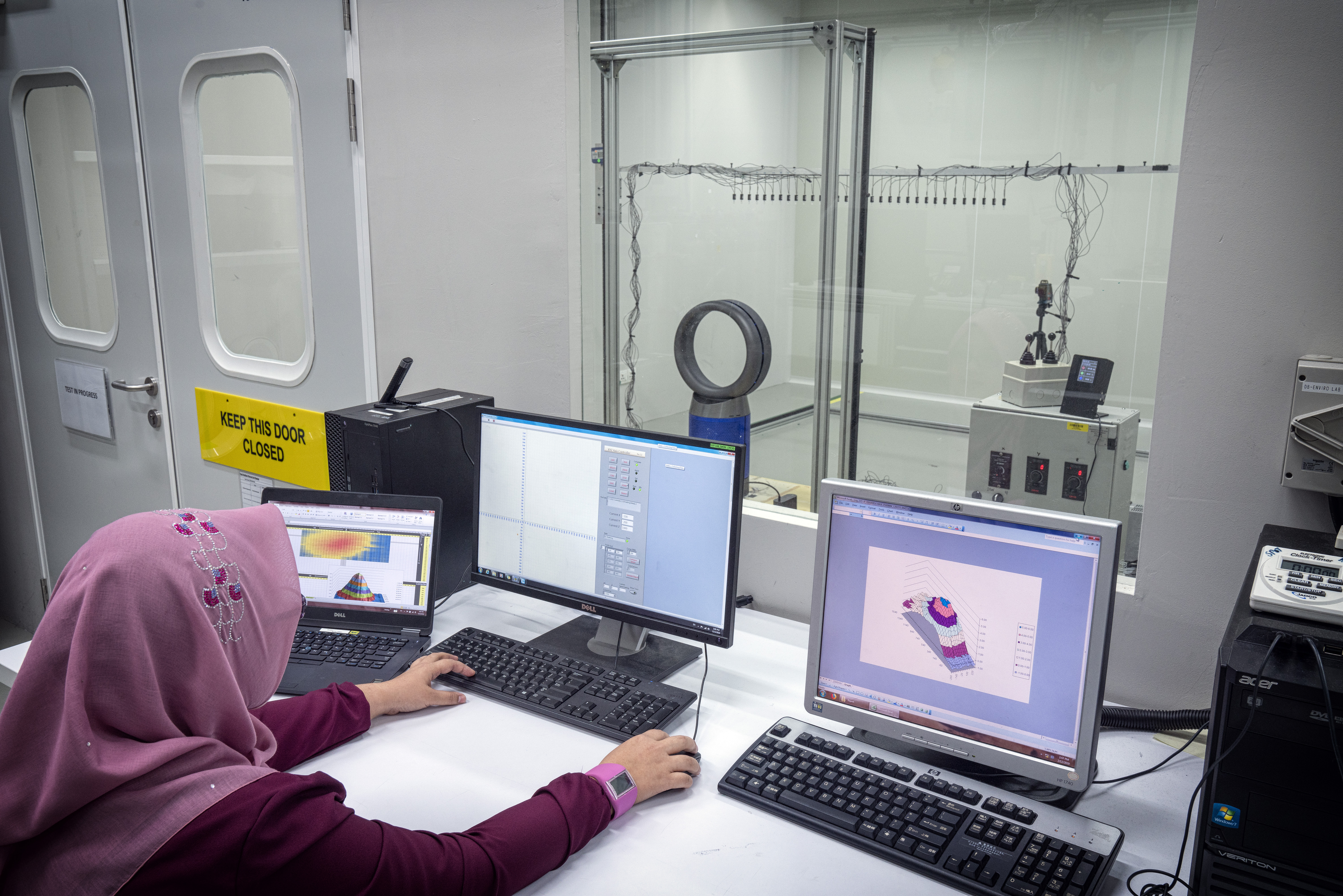 การทดสอบนี้เป็นการร่วมมืออย่างใกล้ชิดกับวิศวกรของไดสันและผู้เชี่ยวชาญจาก CHEARI ในการสร้างห้องขนาด 27 ตารางเมตรขึ้นมา เพื่อจำลองห้องนั่งเล่น ทำความเข้าใจการหมุนเวียนอากาศในสภาพแวดล้อมที่ใกล้เคียงกับคนอยู่อาศัยจริง