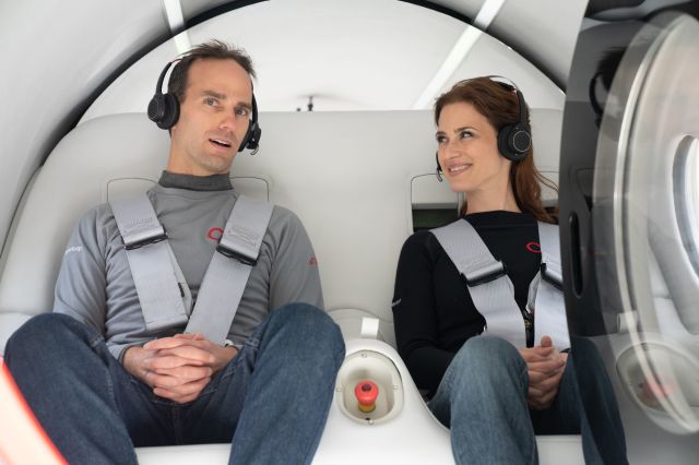 ผู้โดยสารสองรายคือ Josh Giegel ผู้ร่วมก่อตั้งบริษัทและ Sara Luchian หัวหน้าฝ่าย Passenger Experience ที่มารับผิดชอบลองนั่งเที่ยวโดยสารแรก แต่ก่อนจะมานั่งทดสอบได้จะต้องมีการผ่านการทดสอบสภาพร่างกายว่ามีสุขภาพดี รวมถึงมีการเตรียมพร้อมก่อนทดสอบจริง
