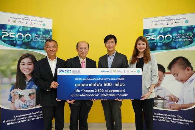 บริษัท ไทยซัมซุง อิเลคโทรนิคส์ จำกัด ร่วมสนับสนุนการศึกษาด้านวิทยาศาสตร์และเทคโนโลยีผ่านการมอบสมาร์ทโฟนจำนวน 500 เครื่องให้โครงการ “2,500 กล้องจุลทรรศน์ จาก 2,500 โทรศัพท์มือถือเก่า เพื่อ 2,500 โรงเรียนชายขอบ” โดยความร่วมมือระหว่างกระทรวงดิจิทัลเพื่อเศรษฐกิจและสังคมและจุฬาลงกรณ์มหาวิทยาลัย เพื่อใช้เป็นอุปกรณ์ทดแทนกล้องจุลทรรศน์ในโรงเรียนที่ประสบความขาดแคลนอุปกรณ์การศึกษาทางวิทยาศาสตร์ทั่วประเทศ
