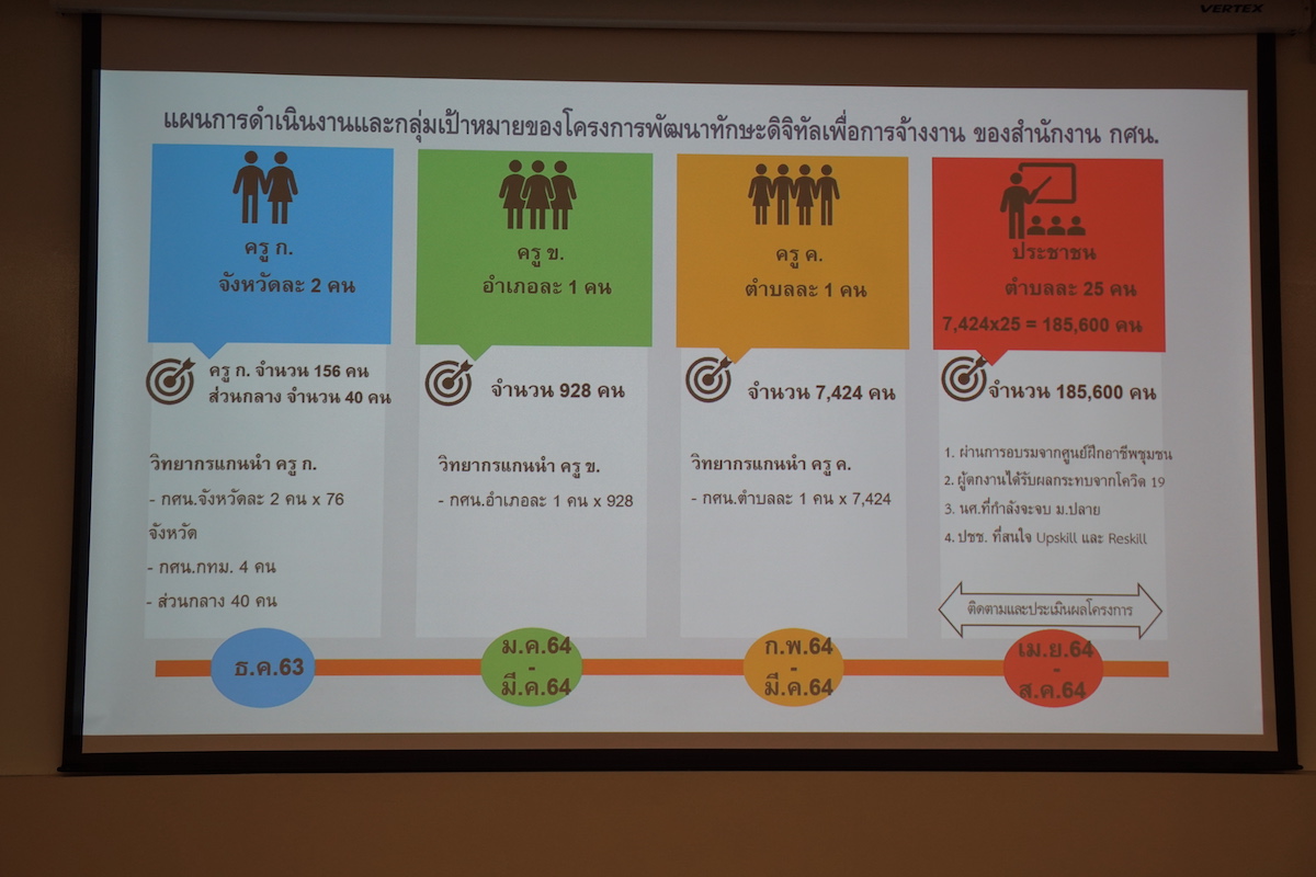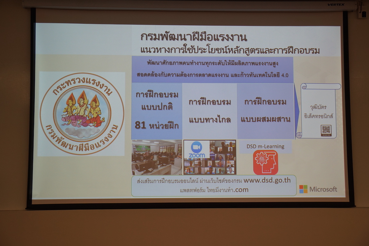 - กรมพัฒนาฝีมือแรงงาน ร่วมมือกับไมโครซอฟท์เพื่อจัดฝึกอบรมทักษะเชิงดิจิทัลแก่บุคลากรของกรมพัฒนาฝีมือแรงงาน เพื่อนำความรู้ไปขยายผลแก่กลุ่มเป้าหมายของกรมพัฒนาฝีมือแรงงานทั่วประเทศ สนับสนุนความรู้และเนื้อหาการฝึกอบรมที่จัดทำขึ้นในโครงการให้สอดคล้องกับความต้องการตลาดแรงงาน ผ่านเครือข่ายและแพลตฟอร์มของกรมพัฒนาฝีมือแรงงาน รวมทั้งร่วมกันปรับปรุงมาตรฐานฝีมือแรงงานแห่งชาติ และส่งเสริมให้แรงงานเข้าทดสอบมาตรฐานฝีมือแรงงานแห่งชาติ สาขาพนักงานการใช้คอมพิวเตอร์ (ประมวลผลคำ ตารางทำการ และการนำเสนอผลงาน) ตามแผนงานและงบประมาณที่ได้รับจัดสรรไว้