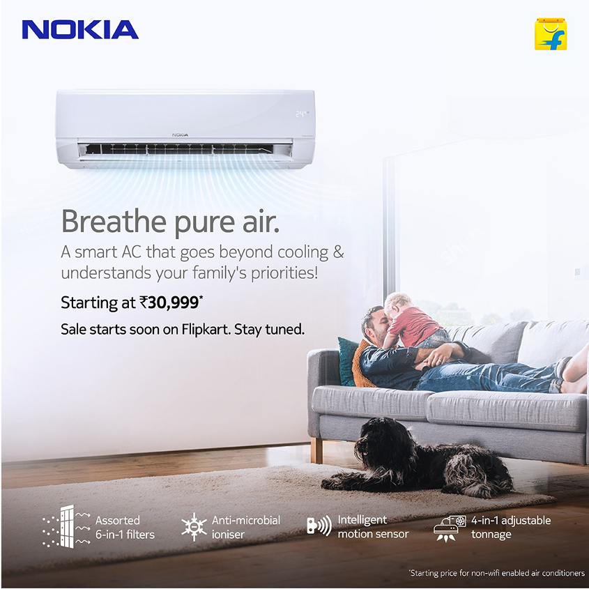 Flipkart ประกาศวางขายเครื่องปรับอากาศแบรนด์ Nokia ในอินเดีย มาพร้อมสารพัดเทคโนโลยีทั้ง Wi-Fi, เซ็นเซอร์อัจฉริยะ สั่งงานผ่านมือถือได้ในราคาแค่ 12,670 บาทเท่านั้น