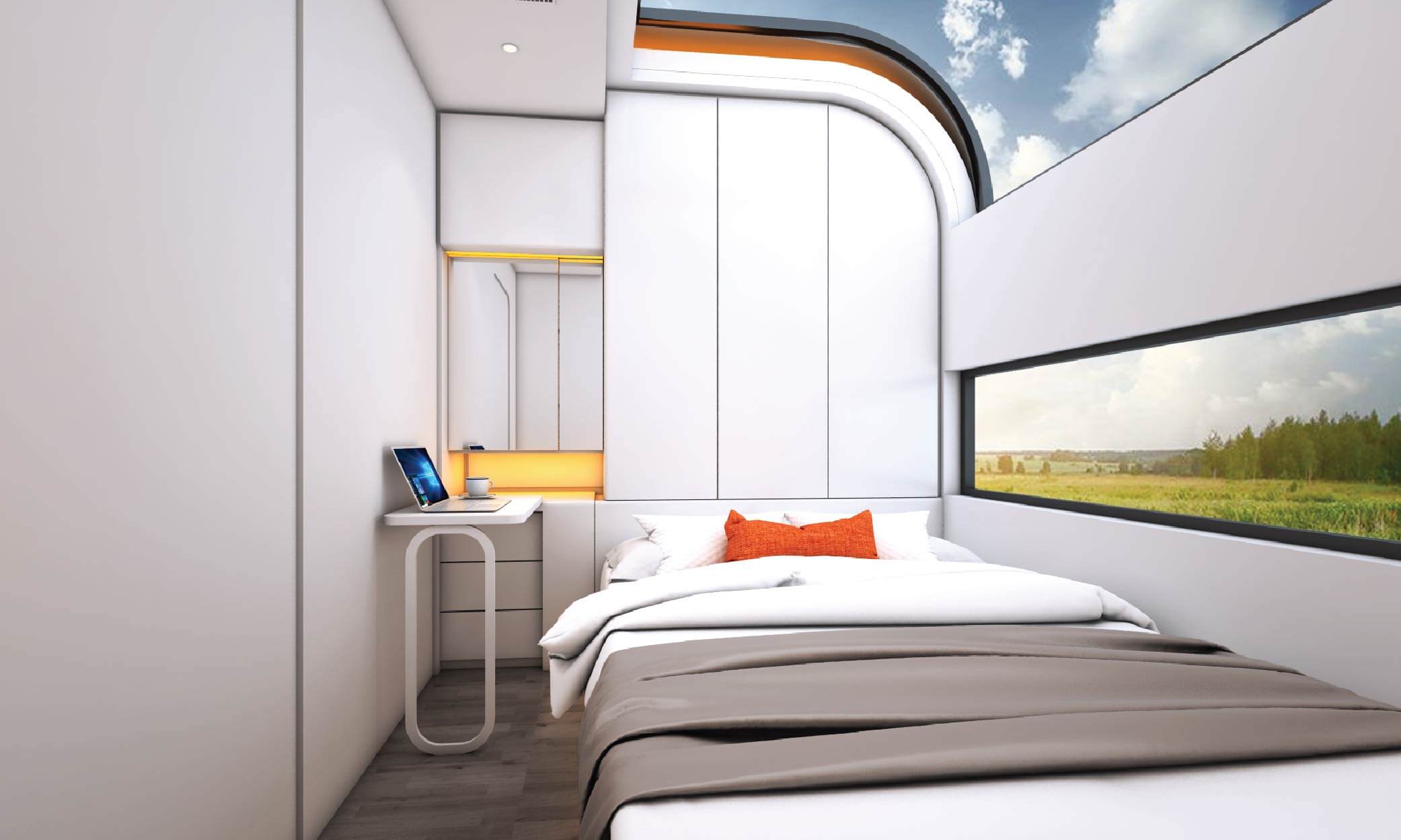 ด้านในประกอบด้วยอุปกรณ์อำนวยความสะดวกและเฟอร์นิเจอร์แบบครบครัน แบ่งเป็นห้องต่างๆตามสัดส่วน มีทั้งห้องนั่งเล่น ห้องครัว ห้องน้ำ ห้องนอนและเคาเตอร์บาร์ ผนังด้านบนเปิดช่อง Skylight สามารถเปิดรับแสงจากภายนอกเพิ่มความสว่าง รวมถึงสร้างบรรยากาศให้ห้องดูกว้างขึ้นด้วย
