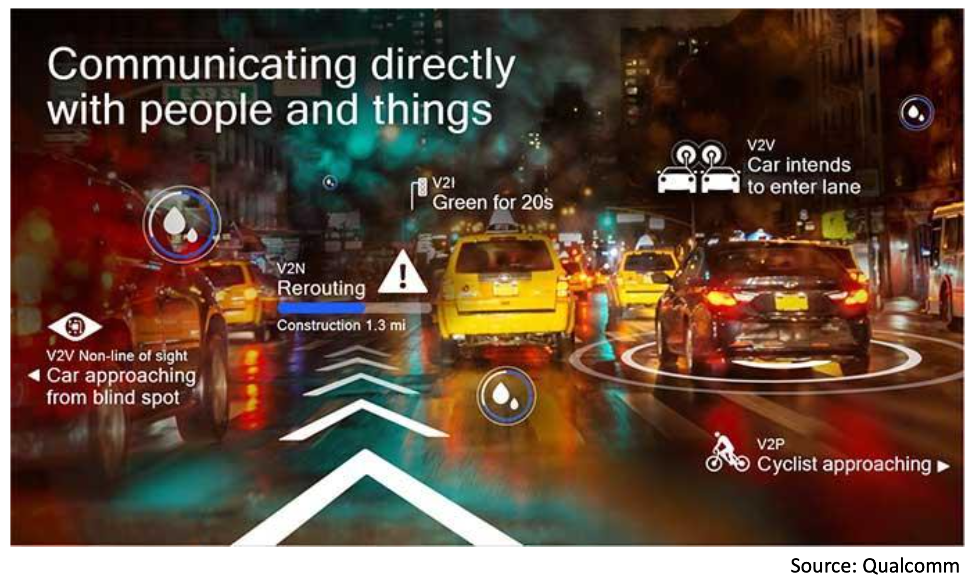 ระบบที่ไม่คุ้นหู อย่าง CV2X คือระบบที่รถคุยกันเอง และคุยกับไฟจราจรเองได้ด้วย เราจะเห็นมากขึ้น เป็นผลจากการใช้ 5G มุ่งหน้าให้เมืองอัจฉริยะ ติดเซนเซอร์รู้จักเมืองดีขึ้น ตามข้อมูลพลเมืองที่เอามาพัฒนาเมืองได้ หรืออาจเริ่มมีตู้ตั้งทำงานเฉพาะกิจ(Smart Kiosk)