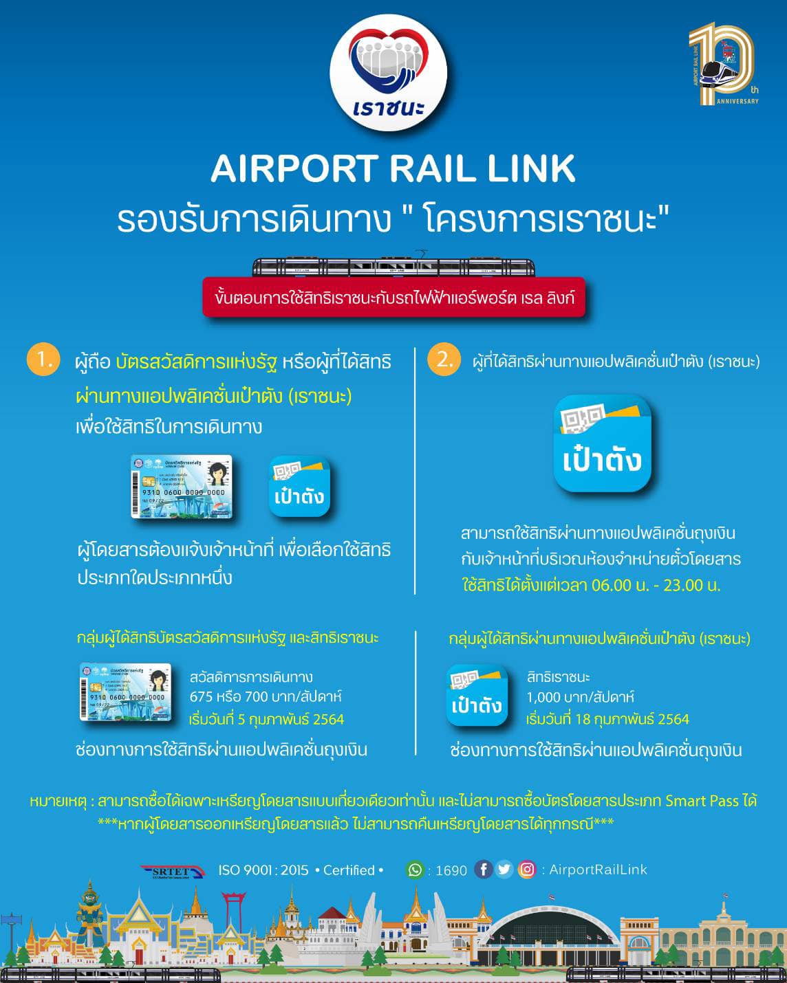 เราสามารถมาติดต่อออกเหรียญโดยสารได้ที่ห้องออกบัตรโดยสารรถไฟฟ้า MRT สายสีน้ำเงิน และสายสีม่วง ทุกสถานีโดยคิดอัตราค่าโดยสารตามระยะทาง ระบบจะทำการตัดเงินจากโครงการ “เราชนะ” ผ่านแอปพลิเคชันเป๋าตัง เริ่มใช้สิทธิ์ในโครงการฯ ได้ตั้งแต่วันที่ 18 กุมภาพันธ์ – 31 พฤษภาคม 2564