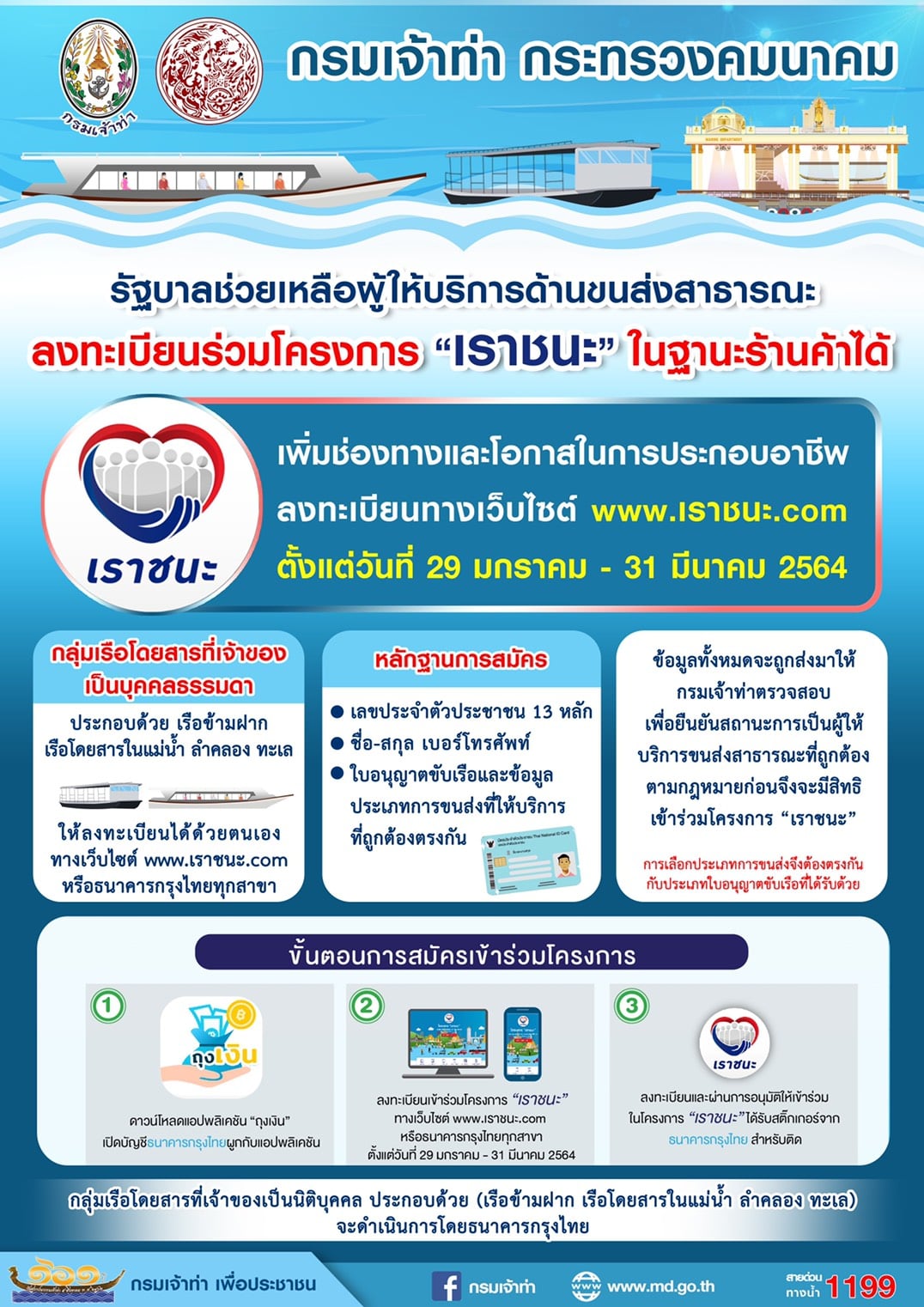กลุ่มรถแท็กซี่ และ รถจักรยานยนต์รับจ้างสามารถลงทะเบียนในฐานะร้านค้า เข้าร่วมโครงการเราชนะ โดยจะต้องลงทะเบียนผ่านเว็บไซต์ www.เราชนะ.com และดาวน์โหลดแอปพลิเคชัน “ถุงเงิน” เพื่อรับชำระค่าบริการ