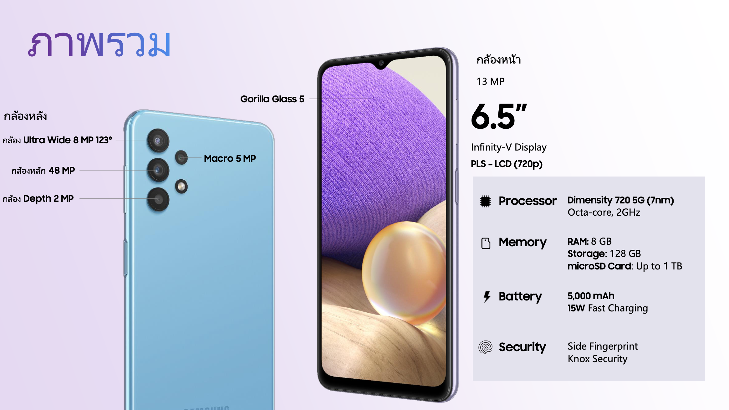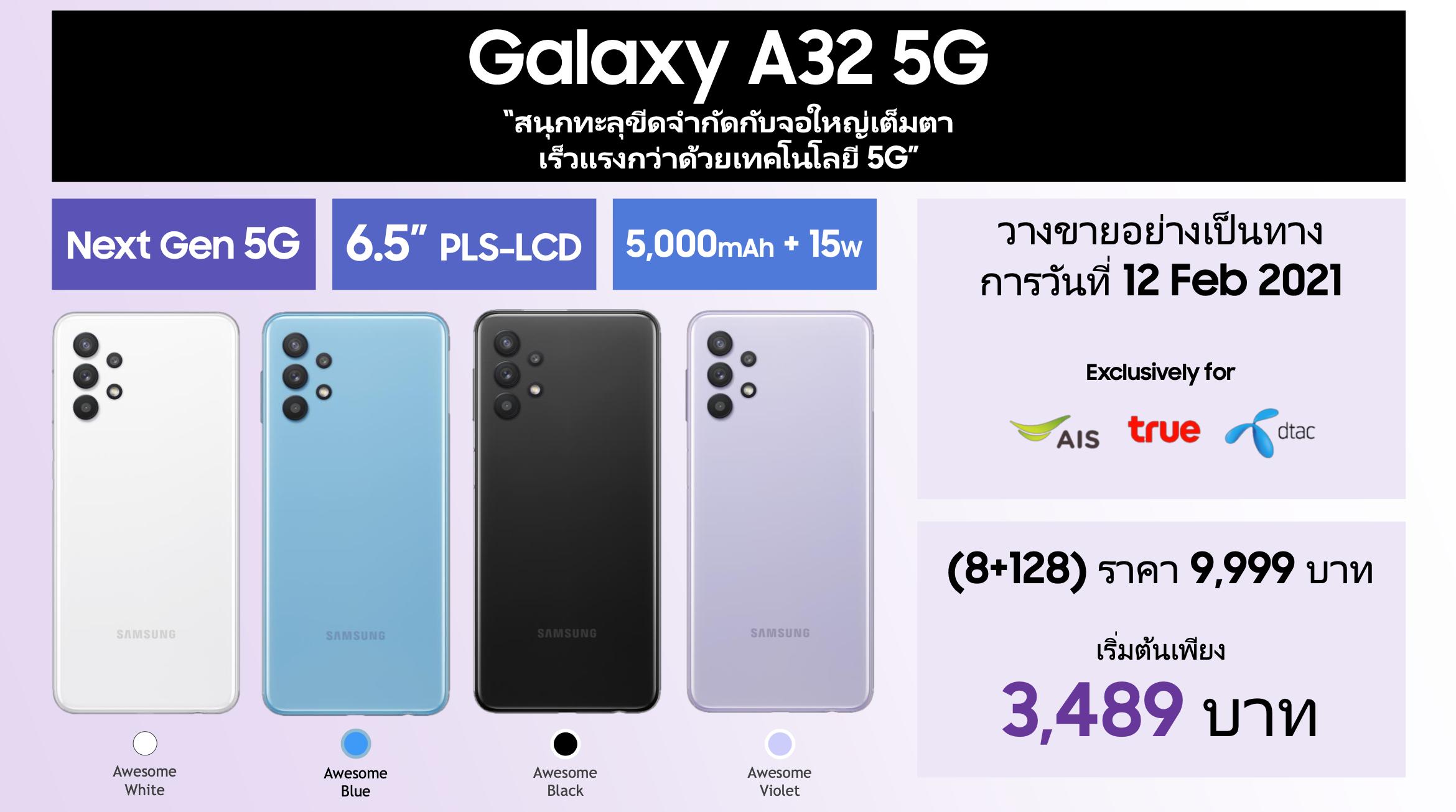 เปิดตัวในประเทศไทยสำหรับ Samsung Galaxy A32 5G มือถือรุ่นสุดคุ้ม ดีไซน์มินิมอล เหมาะสำหรับคนเล่นโซเชียลเป็นอย่างมาก เตรียมวางขายจริงในวันที่ 12 กุมภาพันธ์ 2564
