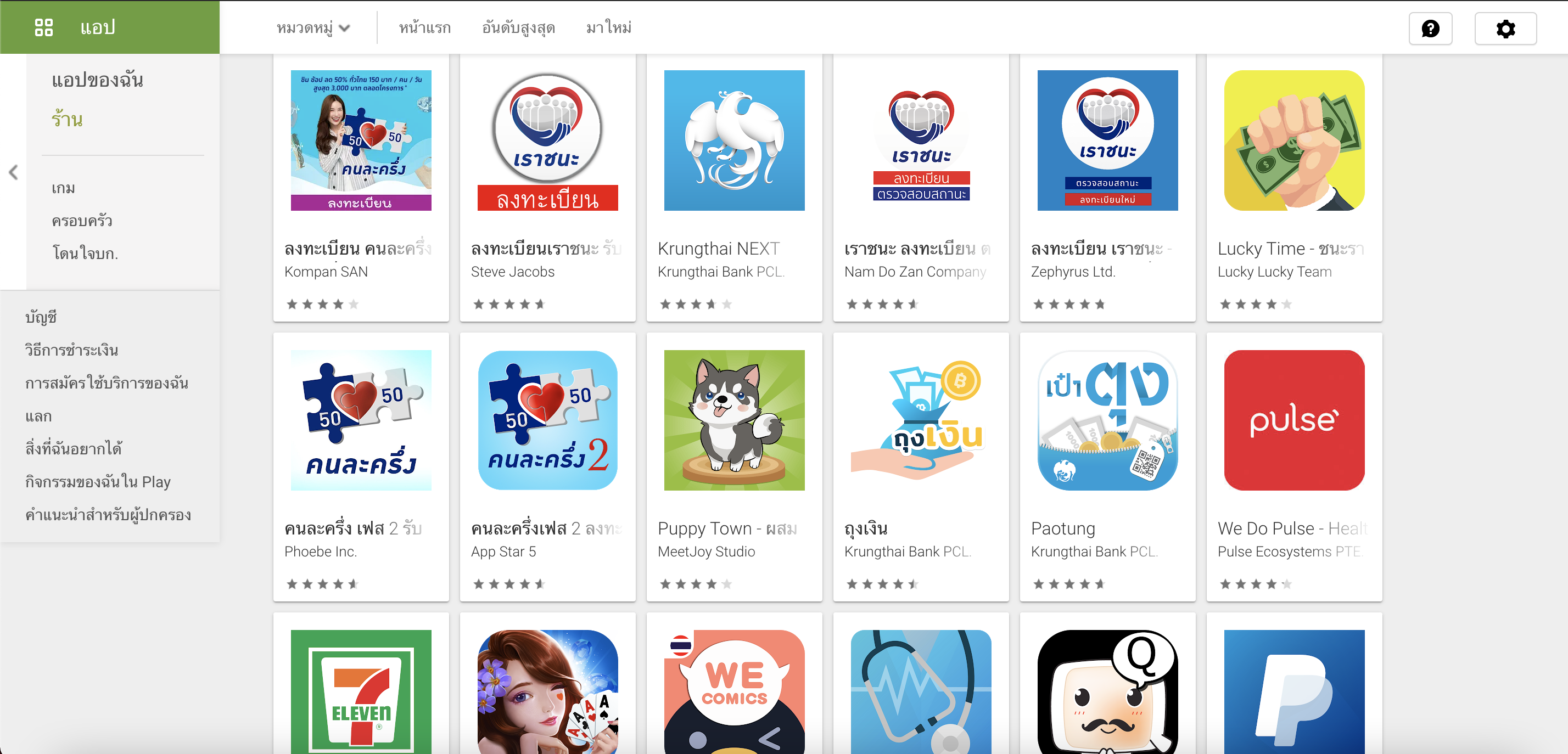 เมื่อเราเข้า Play Store แล้วพิมพ์ว่า เราชนะ จะเห็นว่ามีหลายแอปปรากฎขึ้นมาซึ่งแอปเหล่านี้ไ่ได้พัฒนาโดยหน่วยงานที่เกี่ยวข้อง ไม่ว่าจะเป็นธนาคารกรุงไทย กระทรวงการคลัง หรือ สศค.