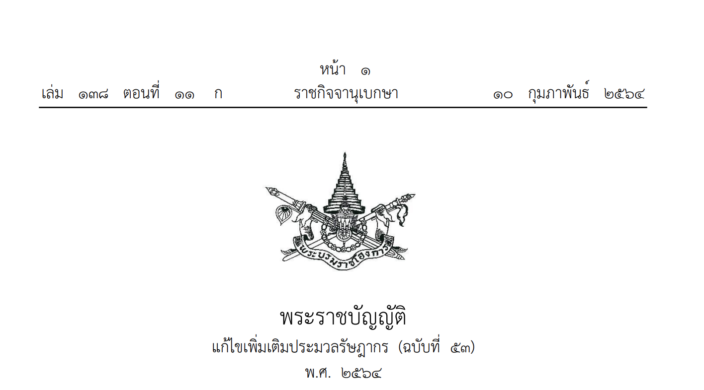 ใครที่สนใจสามารถอ่านประกาศฉบับเต็มได้ที่ http://www.ratchakitcha.soc.go.th/DATA/PDF/2564/A/011/T_0001.PDF