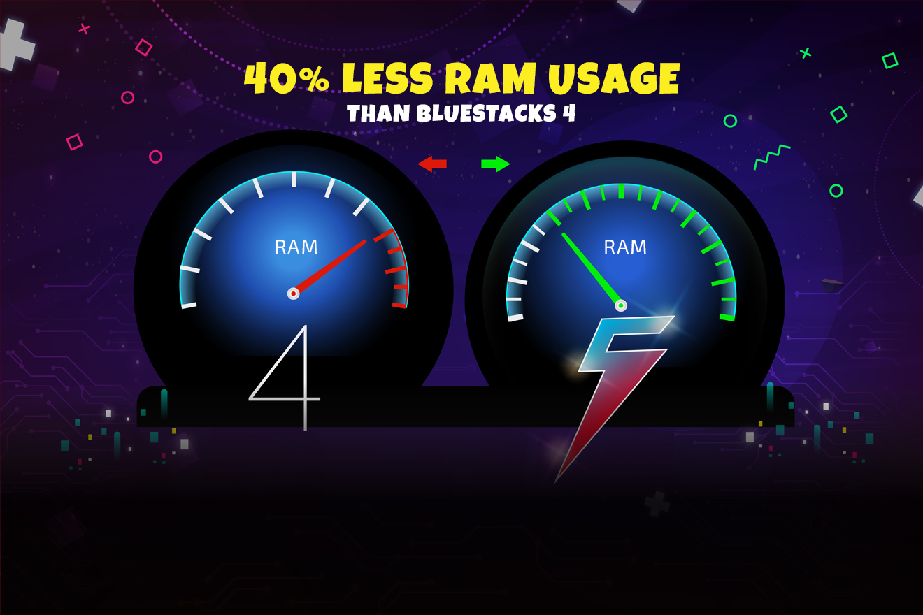 BlueStacks 5 (beta) ลดการใช้ RAM ลงไปกว่า 40% เมื่อเทียบกับเวอร์ชันก่อนหน้า, ทำให้เป็นแพลทฟอร์มเล่นเกมแอนดรอยด์บน PC ที่เบาและเร็วที่สุดที่เคยมี