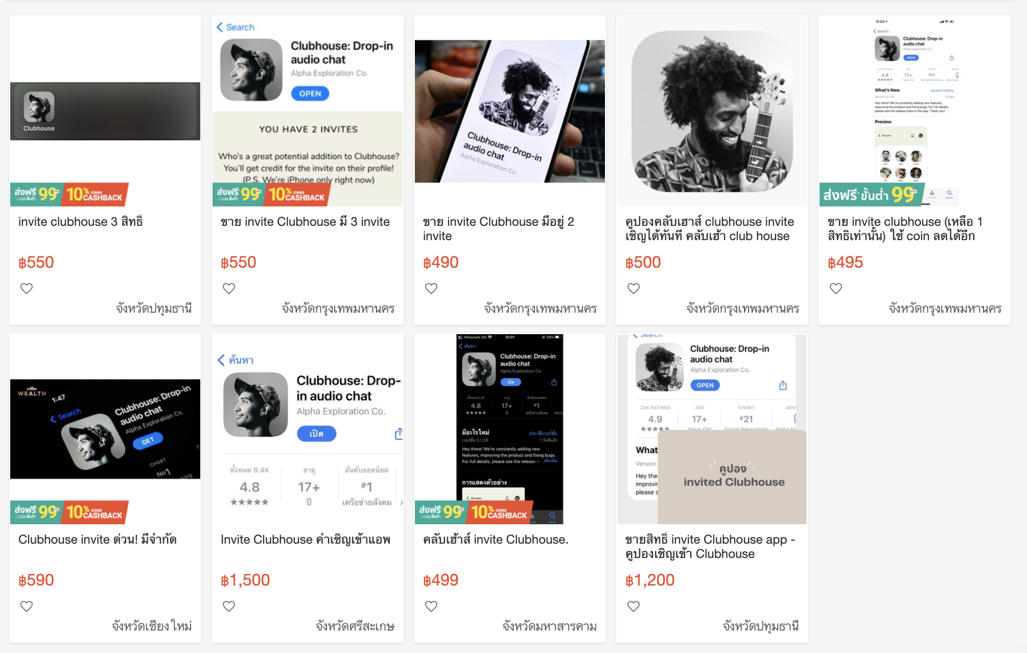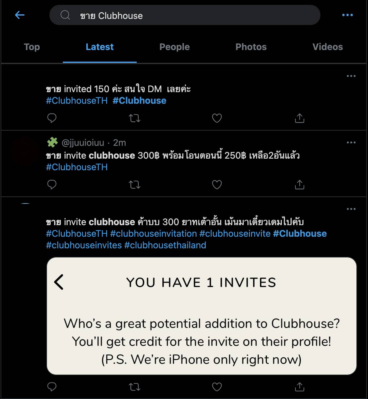 Clubhouse มาแรงแต่คำเชิญเข้าใช้งานไม่พอกับคนต้องการใช้งาน จึงเกิดคนหัวใสเอา Invite มาขายผ่านออนไลน์ ไม่ว่าจะเป็น Twitter หรือ Shopee