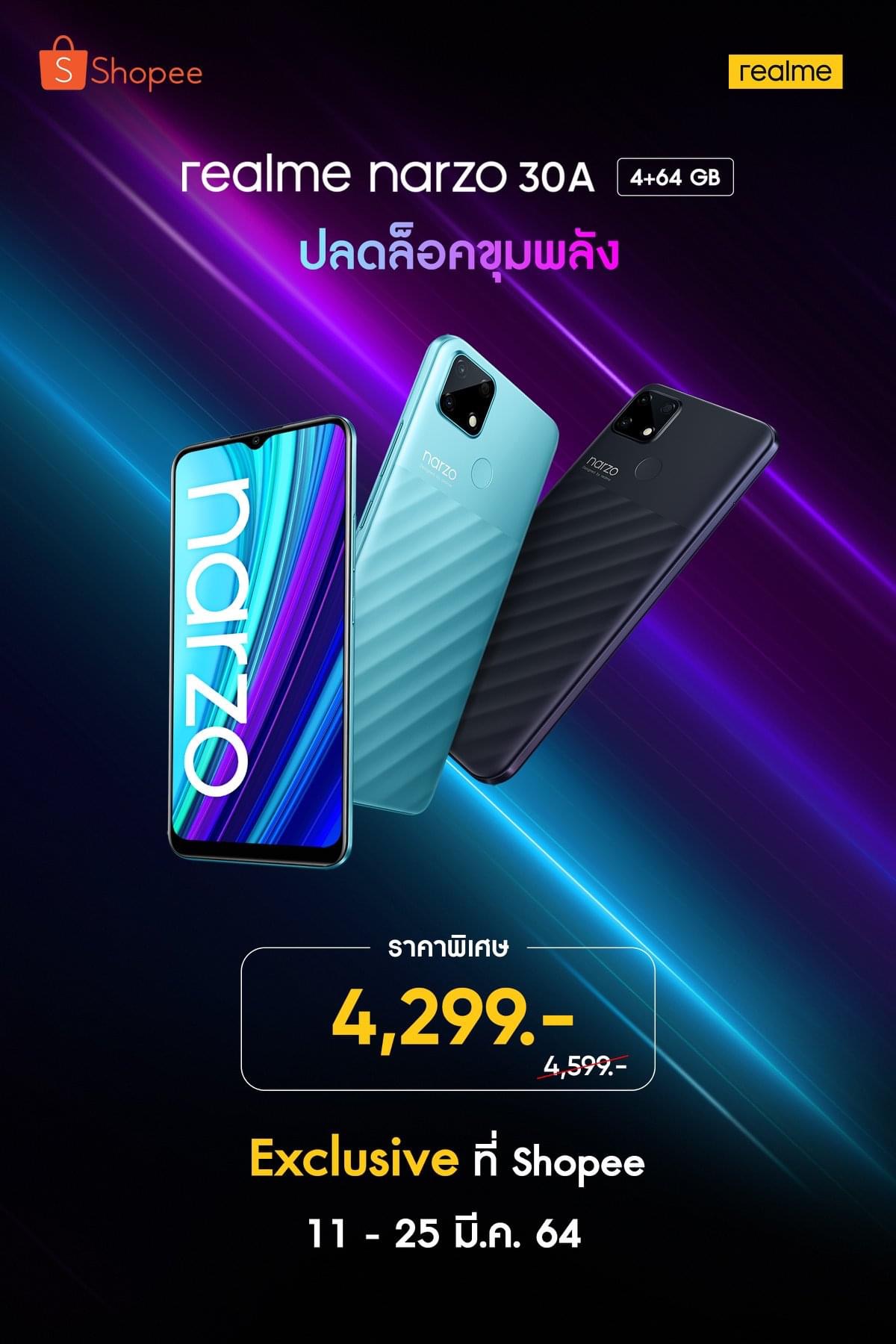 เปิดตัวอย่างเป็นทางการในปรเทศไทยกับสมาร์ตโฟนเกมมิ่งรุ่นใหม่ล่าสุดจากทาง realme อย่าง narzo 30A ที่ราคาโดนใจเป็นอย่างมากเพียง 4,599 บาท เท่านั้น