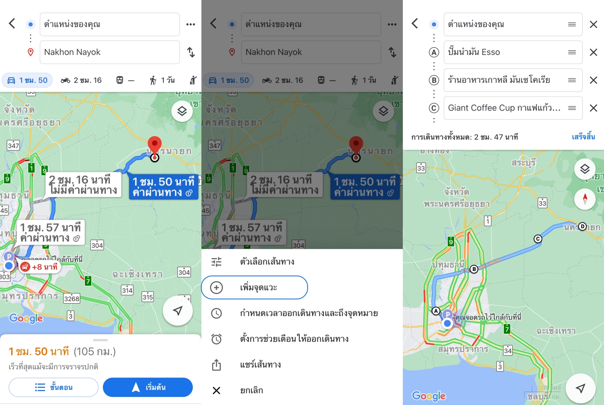 ตัวอย่างฟีเจอร์บน Google Maps ที่สามารถนำมาใช้เพื่อช่วยจัดการการเดินทาง