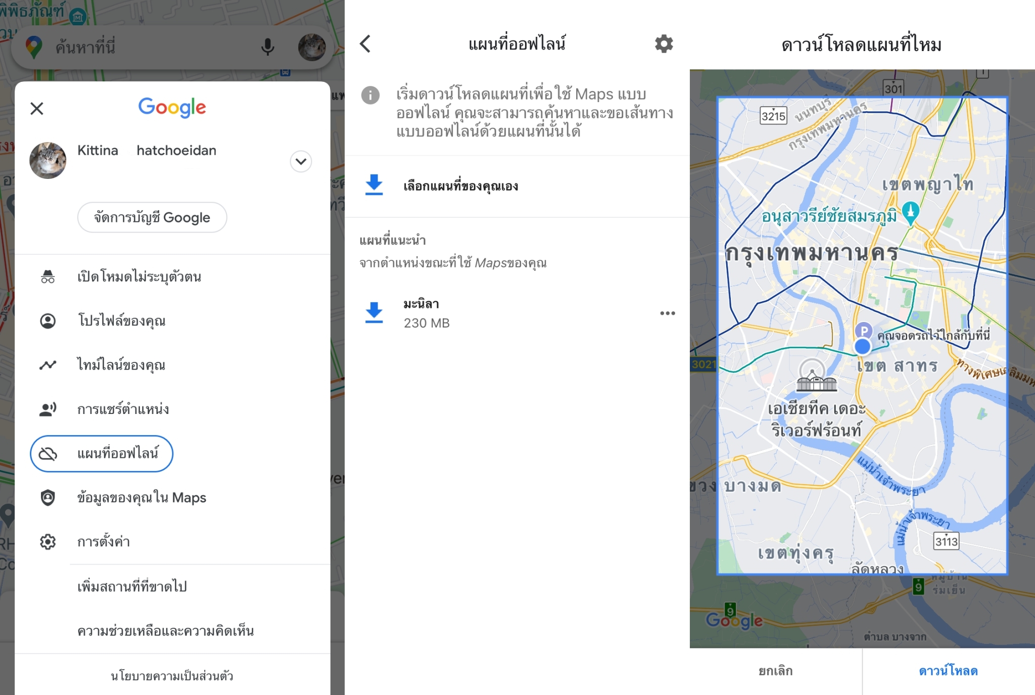 - แผนที่ออฟไลน์ (Offline maps) – เมื่อต้องเดินทางไปยังจุดหมายที่ไม่สามารถเชื่อมต่อสัญญาณอินเทอร์เน็ตได้ คุณสามารถเลือกดาวน์โหลดแผนที่พื้นที่ที่ต้องการในแบบออฟไลน์ เพื่อนำทางแม้ว่าจะไม่มีสัญญาณเน็ตก็ตาม