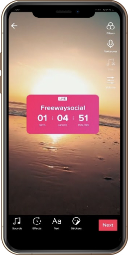 LIVE Countdown Sticker เป็นการแสดงเวลานับถอยหลังก่อนเริ่มไลฟ์ เพื่อแจ้งเตือนให้กับผู้ติดตามได้ทราบว่าการไลฟ์สดที่กำลังติดตามอยู่นั่นจะเริ่มขึ้นภายในอีกกี่นาที เป็นการช่วยกระตุ้นให้ผู้ชมรอติดตามชมการไลฟ์มากยิ่งขึ้นและผู้ชมสามารถตั้งค่าแจ้งเตือนได้ด้วย อีกทั้งครีเอเตอร์ได้เห็นว่ามีจำนวนผู้ชมที่รอรับชมไลฟ์ของเราอยู่ประมาณกี่คน