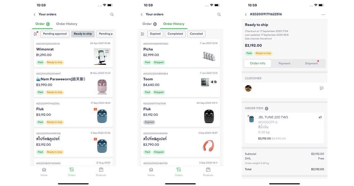Order – ตรงนี้จะรวมข้อมูลออเดอร์ทั้งหมดที่มีลูกค้าสั่งซื้อเข้ามา รวมถึงออร์เดอร์ย้อนหลังทั้งหมด ซึ่งเราสามารถเลือกฟิลเตอร์เพื่อดูเป็นรายหมวดหมู่ได้ว่าเป็นสินค้าที่รออนุมัติ สินค้ารอการจ่ายเงิน สินค้าเตรียมส่ง เป็นต้น ซึ่งเราสามารถคลิกเข้าไปดูรายละเอียดของแต่ละคำสั่งซื้อได้ รวมถึงกดค้นหาออร์เดอร์ที่ต้องการได้