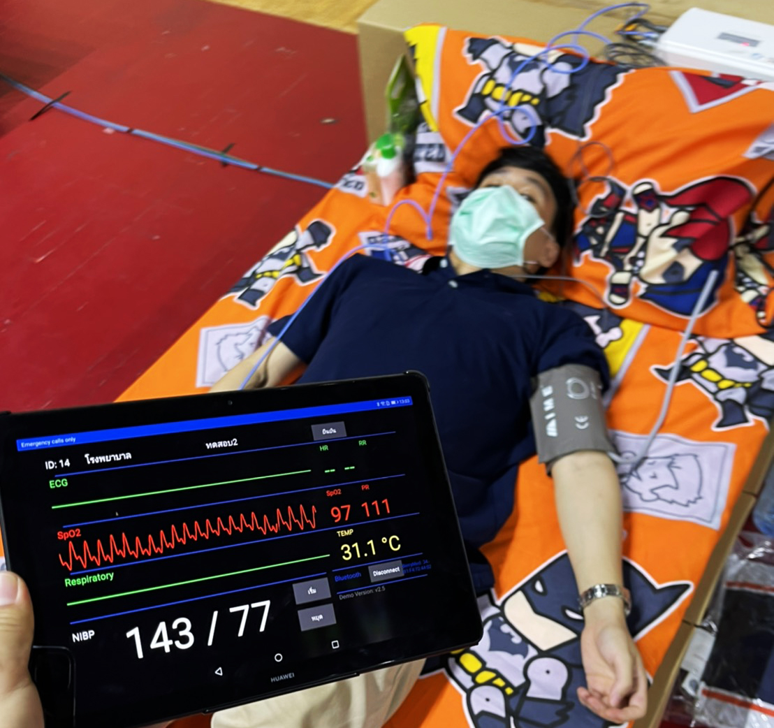 “เอไอวัดสัญญาณชีพทางไกล” เป็นการขมวดองค์ความรู้ด้านการแพทย์และปัญญาประดิษฐ์ โดยมี 2 องค์ประกอบสำคัญ ได้แก่ “อุปกรณ์ปลอกแขน” ทำหน้าที่ตรวจจับสัญญาณชีพค่าต่าง ๆ ของผู้ป่วย ทั้งคลื่นไฟฟ้าหัวใจ อัตราการหายใจ อัตราการเต้นของหัวใจ ค่าออกซิเจนในเลือด (เปอร์เซ็นต์) อุณหภูมิ และค่าความดันโลหิต และ “เอไอ” ที่ช่วยแพทย์วิเคราะห์พร้อมแสดงข้อมูลสัญญาณชีพผู้ติดเชื้อขั้นวิกฤตแบบเรียลไทม์ไปยังมอนิเตอร์ส่วนกลาง ซึ่งช่วยให้แพทย์ทำการวิเคราะห์แนวทางการรักษาได้อย่างทันท่วงที ผ่านการสวมปลอกแขนให้ผู้ป่วยตั้งแต่ครั้งแรก โดยมีต้นทุนอยู่ที่ 90,000-100,000 บาทต่อชุด และในอนาคต เตรียมพัฒนานวัตกรรมทางการแพทย์อื่นๆ ที่เป็นประโยชน์ต่อการใช้ในงานในช่วงสถานการณ์ฉุกเฉิน เพื่อช่วยเหลือประชาชนและบุคลากรทางการแพทย์ไทยต่อไป