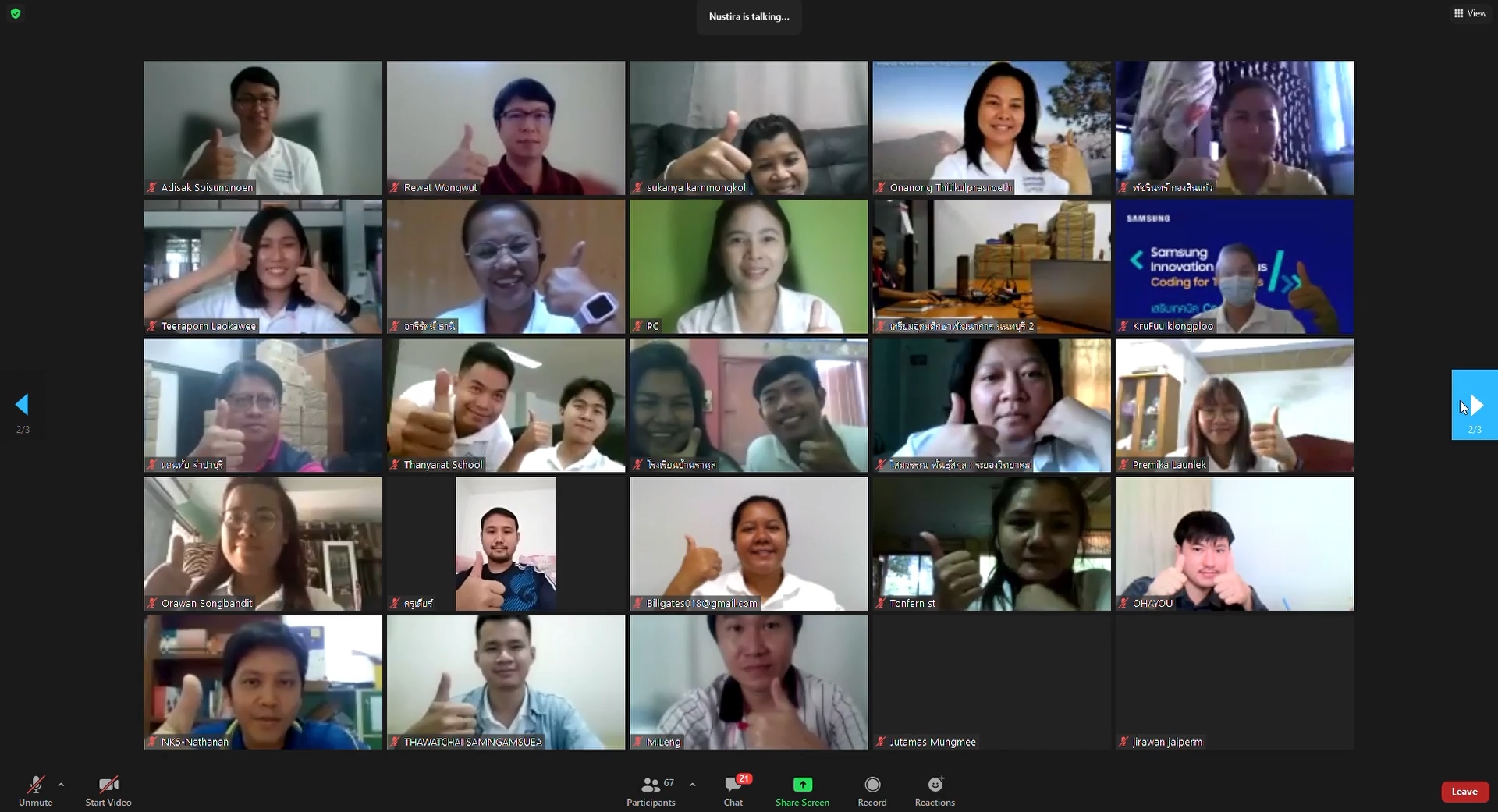 บริษัท ไทยซัมซุง อิเลคโทรนิคส์ จำกัด จัดการอบรมเชิงปฏิบัติการ “Samsung Innovation Campus – Coding for Teachers เสริมเทคนิค Coaching สอน Coding ให้อยู่มือ” เดินหน้าถ่ายทอดองค์ความรู้เรื่องโค้ดดิ้ง และ Computational Thinking มุ่งส่งเสริมและพัฒนาศักยภาพของครูไทยเพื่อให้จัดการเรียนการสอนในห้องเรียนได้อย่างสัมฤทธิ์ผล โดยได้รับเสียงตอบรับที่ดีจากครูผู้สอนวิชาวิทยาการคำนวณระดับชั้นมัธยมศึกษาตอนต้น กว่า 517 โรงเรียนทั่วประเทศที่สนใจสมัครเข้าร่วมโครงการฯ และมีตัวแทนคุณครูทั้งหมด 60 คนที่ได้รับการคัดเลือกให้เข้าร่วมการอบรมผ่านแพลตฟอร์มออนไลน์ที่จัดขึ้นเมื่อวันที่ 8 และ 9 พฤษภาคม 2564 ที่ผ่านมา