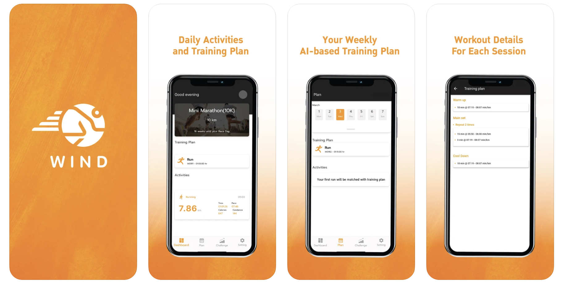 นี่คืออีกหนึ่งแอปน่าสนใจฝีมือคนไทยชื่อว่า WIND ซึ่งเอา AI มาช่วยวางแผนการซ้อมวิ่ง ปรับตารางให้เข้ากับแต่ละบุคคลเพื่อช่วยให้พัฒนาความสามารถในการวิ่งโดยที่ไม่อาการบาดเจ็บมารบกวน