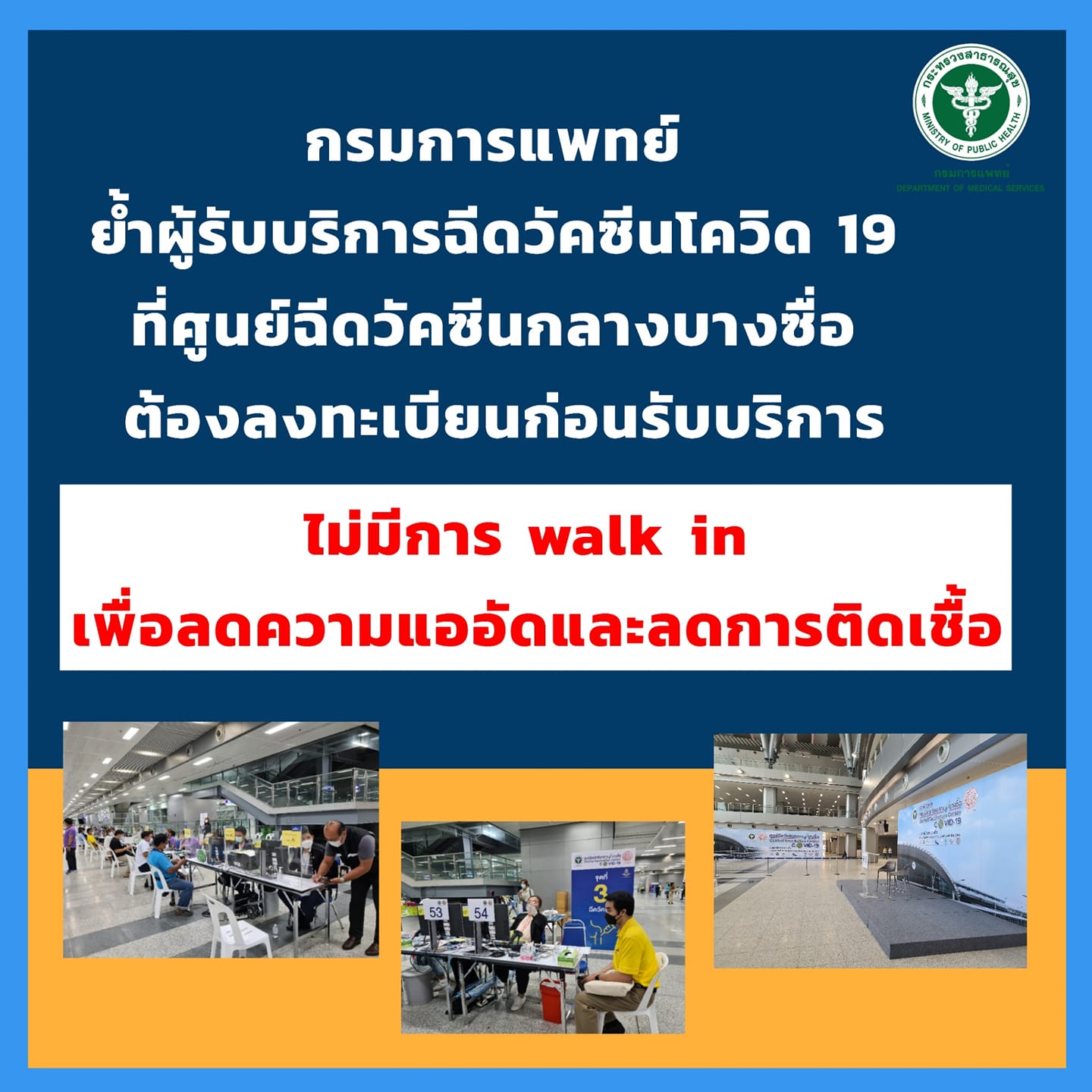 หลังจากที่มีข่าวส่งต่อกันทาง LINE ว่า ศูนย์ฉีดวัคซีนกลางบางซื่อเปิดรับฉีดวัคซีนแบบ walk in แล้ว ล่าสุดทางกรมการแพทย์ออกมายืนยันแล้วว่าข้อความนี้ไม่เป็นความจริง